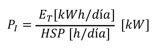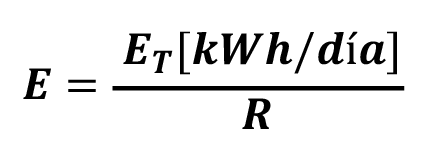 A partir del consumo de energía eléctrico promedio mensual, se obtiene la energía teórica requerida, dividiendo entre 30 días, ET [kWh].