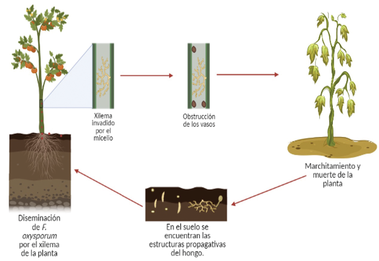 Figura 2. Ciclo de la marchitez por Fusarium oxysporum