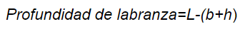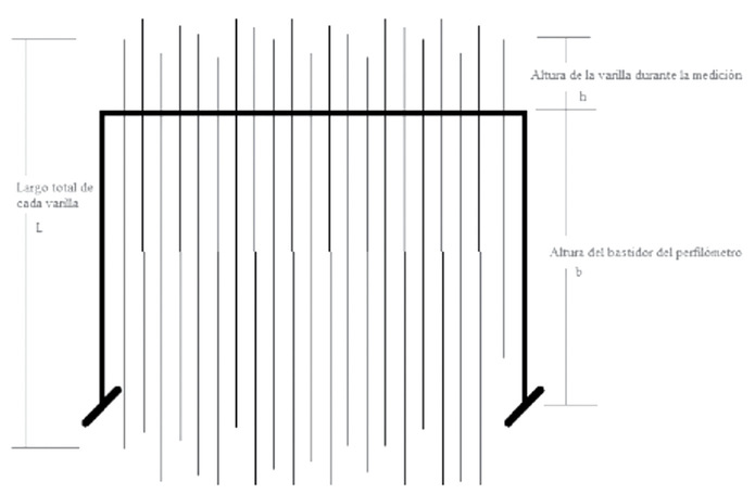 (ecuación 3)Donde L es la longitud de las varillas (todas son iguales), b es la altura del bastidor del perfilómetro y h es la altura sobresaliente de la varilla cuando se mide profundidad.