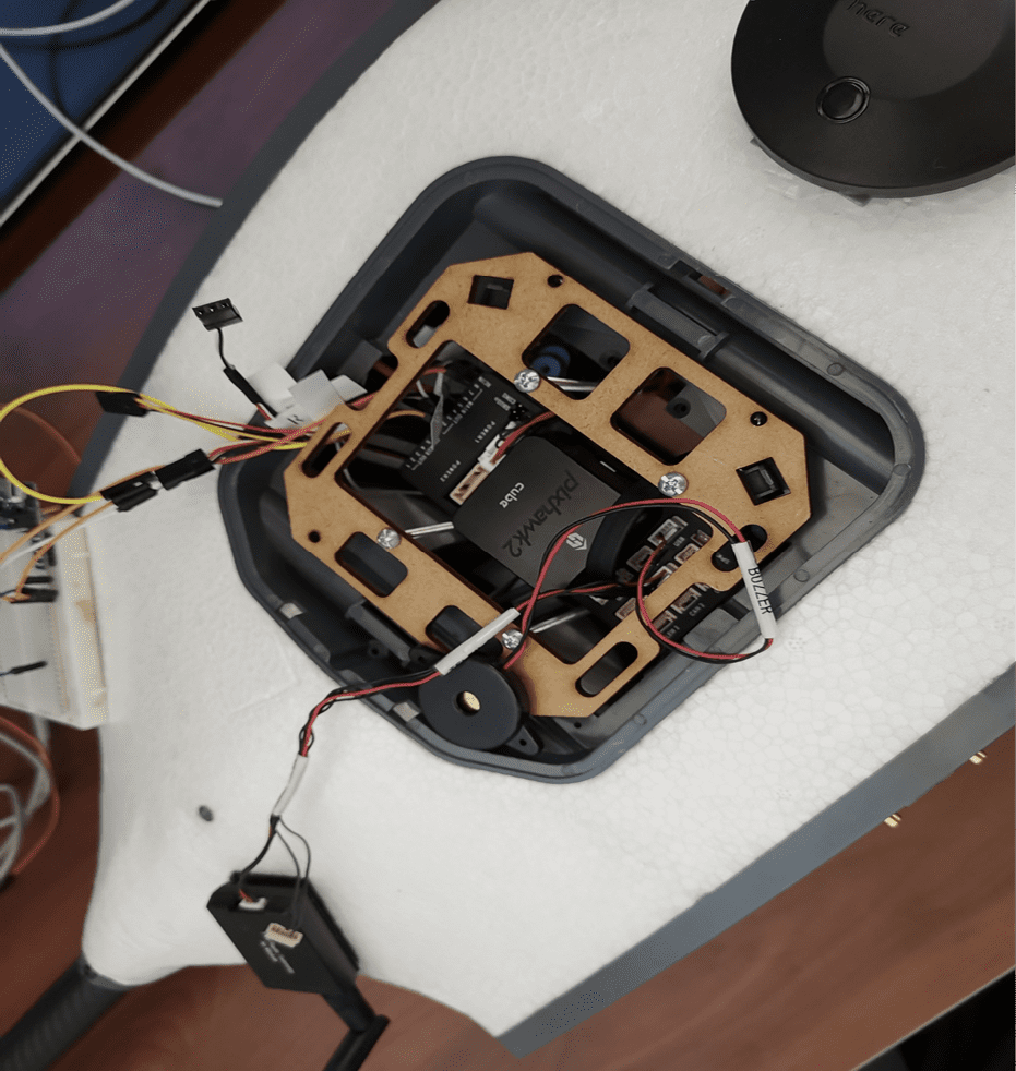 Figura 3. Controlador de Vuelo, Pixhawk 2, fijado dentro del fuselaje de la plataforma.