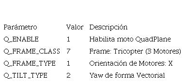 Posteriormente se realizó la programación del controlador mediante el software Mission Planner [21], con el cual se instala el firmware ArduPlane [22] y se programa el controlador. Para programar el controlador de vuelo, se modifican los parámetros que controlan diferentes aspectos que controlan el funcionamiento de la plataforma, desde la estructura en términos de cantidad y configuración de los motores, hasta tasas de ascenso, descenso, ajustes del control de estabilidad de la aeronave, ajuste de los servomotores, entre otros. Algunos de los parámetros más importantes para la plataforma se encuentran resumidos en el cuadro 1.