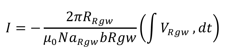 ( 2 )La bobina de Rogowski es toroidal y mide corriente eléctrica. La diferencia de potencial en la bobina es proporcional al número de vueltas N en la bobina y a la derivada del tiempo del flujo magnético, y la corriente se obtuvo de la Ley de Ampere, utilizando las siguientes ecuaciones: