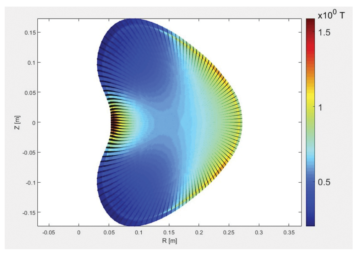 La magnitud del campo magnético obtenida a partir de MAKEGRID utilizando solo el campo de las bobinas toroidales se presenta en la figura 2.
