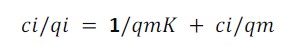[Ecuación 1.]Ecuación 1. Isoterma de Langmuir linealizada [35], [36]
