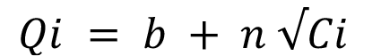 Donde Qi es la masa de Ca adsorbido por unidad de masa de suelo (meq g-1), Ci es el equilibrio de las concentraciones de Ca en solución (meq l-1), n es una constante relacionada con la afinidad del catión a los coloides y b la intersección o teóricamente la cantidad desorbida del Ca.
