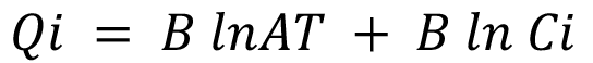 Donde Qi es la masa de Ca adsorbido por unidad de masa de suelo (meq g-1), Ci es el equilibrio de las concentraciones de Ca en solución (meq l-1), AT es la constante de unión de equilibrio isotérmico de Tempkin y B está relacionado constantemente con el calor de sorción.