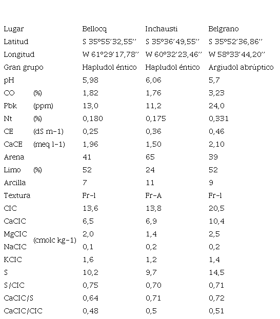 Se realizó un ensayo siguiendo el procedimiento de cantidad/intensidad basado en el método descrito por Beckett [29], modificado para Ca, en los suelos de Belgrano, Bellocq e Inchausti pertenecientes a la provincia de Buenos Aires, Argentina (Figura 1). Los datos de los suelos utilizados se presentan en el Cuadro 1.
