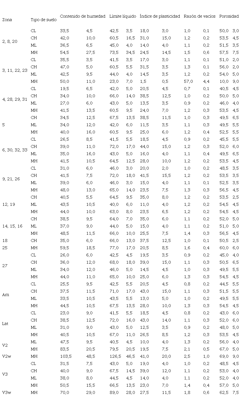 Si bien es cierto se recomienda utilizar los valores de desviación estándar presentados para poder realizar análisis y diseños probabilísticos donde el profesional especialista así lo considere, no es aconsejable sustituir una adecuada investigación geotécnica por los valores promedio acá presentados. Los valores promedios deben limitarse a brindar información complementaria que el especialista en ingeniería geotécnica puede valorar en sus análisis.