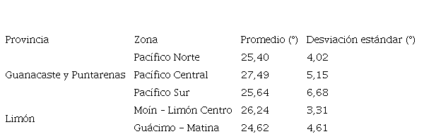 Por último, como los resultados de ángulo de fricción efectivo en la zona de Guanacaste y Puntarenas llegan a ser muy similares, se unificaron estas dos provincias, y se subdividieron en Pacífico Norte, Central y Sur. Los resultados se muestran en el cuadro 8 , y se puede decir que, aunque los valores promedios son muy similares entre sí, las desviaciones estándar llegan a variar considerablemente.