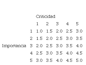 Finalmente, para el cálculo del BHI, se utiliza la matriz mostrada en la figura 3, se introduce el valor de la importancia socioeconómica en importancia (columna) y la criticidad de la estructura (fila) que es el valor mayor entre el BCI, BS y BH.