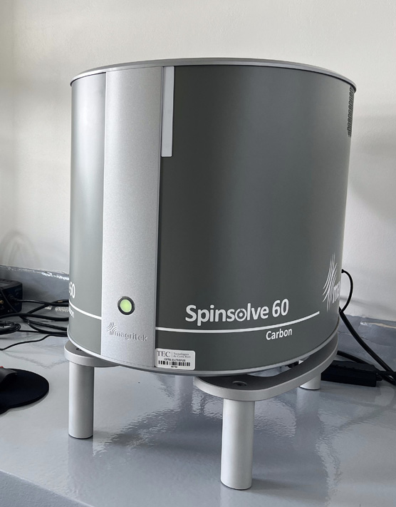 En los últimos años, el desarrollo de la RMN en campo bajo ha sido significativo, generando resultados prometedores [79–84]. Gracias a este desarrollo, en el año 2022, la Escuela de Química del TEC decidió adquirir un equipo de 60 MHz de la marca Magritek, modelo Spinsolve 60. El equipo se financió con apoyo de la Vicerrectoría de Investigación y Extensión (VIE) por un monto de $60 000 [103]. Se instaló en el Edificio de la Escuela de Química del TEC.