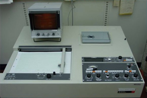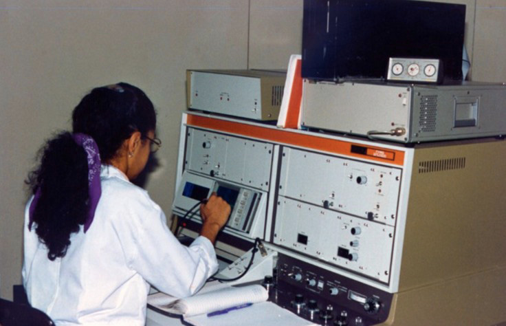 La DGA adquirió el primer equipo de RMN en 1982, con presupuesto propio de la institución, el cual era un modelo R24-B de 60 MHz de las empresas Hitachi y Perkin-Elmer [93, 94]. Al igual que los equipos anteriores, funcionaba bajo el principio de onda continua [89]. Solo hacía mediciones de 1H y tenía la capacidad de hacer desacoplamientos electrónicos. Fue ampliamente utilizado para cuantificación de diversos analitos, así como para la determinación de índices de saponificación, destacando su uso en la prestación de servicios. Su uso en aplicaciones académicas fue más limitado, hasta que el equipo fue dado de baja en el año 2000 [93, 94]. En la figura 4 se muestra un dispositivo R24-B de 60 MHz, similar al del laboratorio de la DGA.