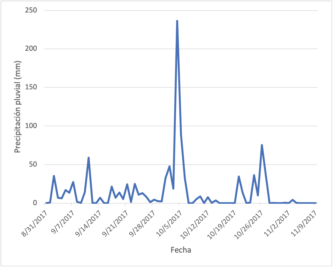 También se obtuvieron los datos de las variables climáticas de la zona (precipitación pluvial, temperatura, y humedad relativa), durante el período de ejecución de la investigación, a través del Instituto Meteorológico Nacional. Asimismo, se realizó el análisis físico y químico del suelo de la parcela en ambas localidades; el muestreo se realizó al azar, con un total de 20 submuestras, y una profundidad de 0-20 cm, en los días previos a la siembra.