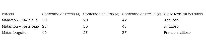 En el cuadro 2 se presentan los resultados del análisis físico, y en el cuadro 3 los del análisis químico, del suelo de las parcelas en las que se realizó esta evaluación.