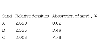 Three fine aggregates were selected for the experiments (Ottawa-A, river-B and quarry-C). Marked differences in their absorptions were detected. In addition, granulometries, fineness module (F), specific gravity and absorption were assessed. [19,20]