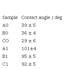 The contact angle with water was measured on placing a sessile water drop (10 μL) on a clean and regular surface of each sample. Digital photographs of the drops were processed and analyzed (DropAnalysis, software ImageJ). [24]