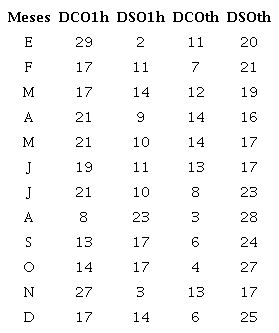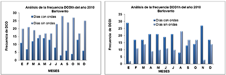 En la (Tabla 2) se comparan los resultados de días DCO y DSO, en este sentido los casos en que los Fr estuvieron entre 0.50 y 3 en al menos un horario se tuvo en cuenta, ya que la permanencia de la onda en el tiempo podría ser efímera, aunque no sería aplicable para los fines de esta investigación. Las cuatro poblaciones destacan la posibilidad de la existencia de este fenómeno en la zona investigada.