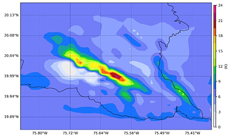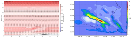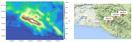 ABSTRACT: A preliminary study of internal gravity waves (mountain) focused on the Sierra Gran Piedra, specifically on the hill of La Africana, where a diagnosis of the wind field was made in complex orography interpolated consonants of the atmosphere and data from the Archives of the Laboratory of Air Resources (ARL, acronym in English). These surveys were analyzed with the Integral System for the Analysis of Aerological Surveys (SIASA). Knowing the presence of this meteorological phenomenon is very useful for the development of activities of great socioeconomic interest in mountainous areas, such as tourism, sports, air traffic and planting seeding of orographic clouds. Therefore, the necessary conditions for the formation of the waves and their effects were investigated, among them, the atmospheric turbulence, third cause of meteorological accidents and the influence exerted by this meteorological phenomenon in the distribution of the precipitations. The presence of mountain waves in the study region was detected by means of a high resolution numerical model, which includes the effects caused by the complexity of the terrain, the Froude number and the Duct Factor, internationally used indicators. The results showed wave activity through the numerical simulations and the SIASA with the number of Froude around one and positive values of the Duct Factor favorable for wave propagation.