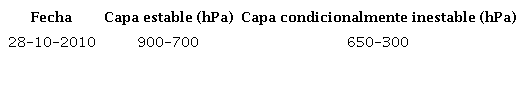 Tras examinar los sondeos de las 1500-1800-2100 UTC (horario en que se observaron las ondas) en el entorno de La Africana, se ha determinado que los mejores niveles de presión para definir las capas estables y condicionalmente inestables son los indicados en la Tabla 3.0.