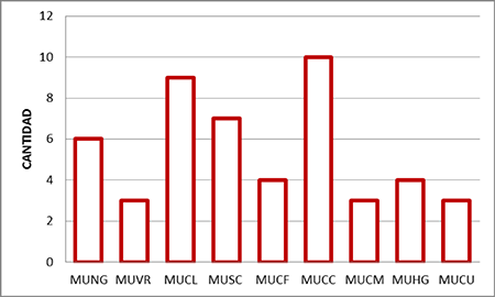 Se confeccionaron 5 avisos de ciclón tropical, 11 notas informativas y 48 avisos de aeródromos. Del total de avisos de aeródromo (Figura 7), la mayor cantidad corresponden a los emitidos para MUCC, MUCL y MUSC, todos ellos por tormentas fuertes que se acercaban a los aeródromos y se encontraban en proceso de intensificación.