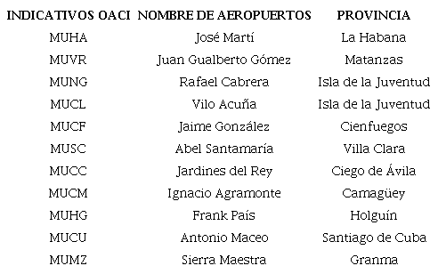 Con el fin de alertar tanto a las tripulaciones de las aeronaves que planifican operaciones en los aeropuertos cubanos, como a los controladores de tráfico aéreo, responsables de las operaciones de sobrevuelos dentro de la FIR Habana, ante la ocurrencia de fenómenos meteorológicos que puedan afectar la seguridad de dichas operaciones, la Oficina Principal y de Vigilancia Meteorológica (OPVM) perteneciente a la Empresa Cubana de Navegación Aérea, la cual tributa al Instituto de Aviación Civil de Cuba (IACC); confeccionan diversos avisos con el objetivo que se tomen las medidas pertinentes para garantizar la seguridad de los vuelos, regida por la Organización de la Aviación Civil Internacional (OACI). Dichos avisos son: