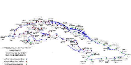 Con los forzamientos medios, la elevación media del mar para Cuba en el 2100 será superior en 10 cm. a lo estimado en el 2006, lo cual indudablemente causará inundaciones en gran parte de la península de Zapata y de la costa norte de la región central (Villa clara-Ciego de Ávila-Camagüey) así como de la cuenca hidrográfica del Cauto y afectando gravemente los reservorios hídricos del sur de las provincias de Artemisa, Mayabeque y Ciego de Ávila.