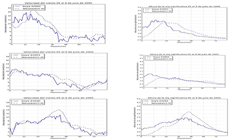 Wind speed records show a great dispersion with respect to the values that have a certain persistence over time, which is really the wind that generates waves. Wind speed absolute errors, in general, are below 2 m/s, but the relative error oscillates around 30%. Here, the influence of hurricane track forecast errors is also present.