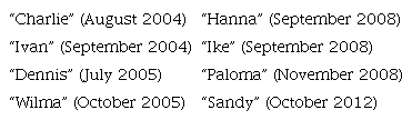 Those hurricanes that affected the Cuban territory and adjacent seas, generating coastal flooding.