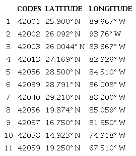 Only deep-water wind wave records are available, derived from buoy data of the National Data Buoy Center (NDBC, 2013), which are mainly installed in the Gulf of Mexico (Figure 2); therefore, only WW3 outputs can be safely evaluated. Table 2 shows the coordinates of the buoys coordinates, used in this work.