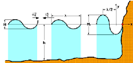 Siguiendo la teoría lineal de la onda, la energía de la ola reflejada (Er ) se puede calcular como: