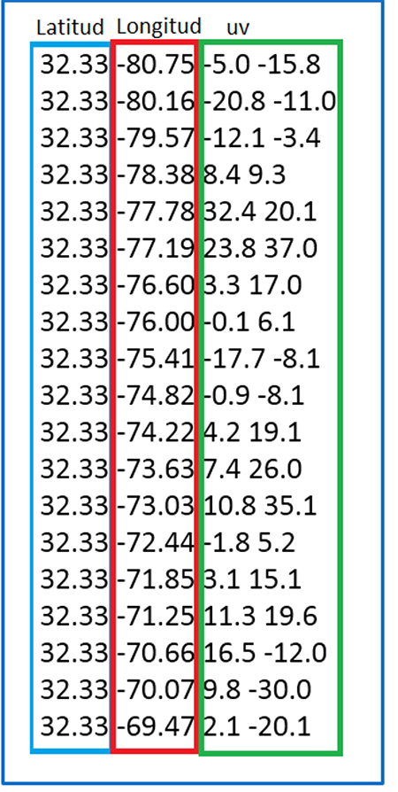 La primera es resultado del empleo del modelo OCCAM con resolución espacial de 0.25° y 36 niveles en la profundidad. El campo es derivado de las corridas del modelo durante tres años, alimentadas con vientos reales del modelo atmosférico ECMWF (por sus siglas en inglés, European Centre for Medium-Range Weather Forecasts). Los errores medios de la altura de la superficie del mar (mssh errores) en las fronteras donde convergen las corrientes, son eliminados empleando alturas climatológicas dinámicas basadas en las climatologías de Levitus (Levitus, 1983) y Lozier (Lozier et al., 1995).