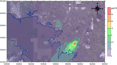 Luego del cálculo de las emisiones se procedió a la modelación de la dispersión del SO2 y NO2 para la ciudad de Cienfuegos aplicando el software AERMOD. Este software es uno de los modelos recomendados por la Environmental Protection Agency de Estados Unidos (EPA USA) para evaluaciones ambientales de proyectos.