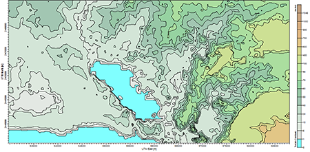 Para la modelación de dispersión de contaminación atmosférica se utilizó un Modelo Digital de Elevación (MDE) disponible de forma libre en internet y que forma parte del proyecto Shuttle Radar Topography Mission (SRTM), Figura 2.
