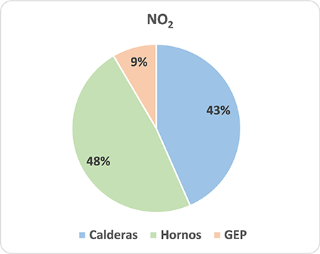 En el caso del NO2 igualmente estas fuentes fueron las de mayores emisiones, a las que se le sumó el GEP Junco Sur, concentrando entre las tres el 99.9 % de las emisiones en el año 2014, Figura 6.