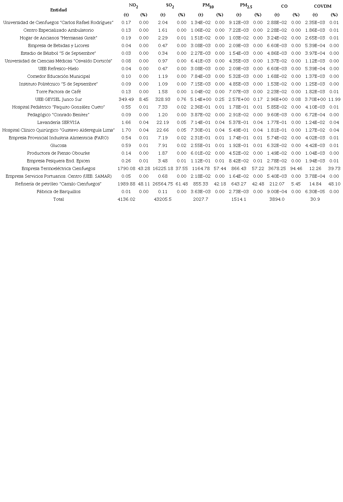 Key words: Emissions inventory, polluting sources, pollutants dispersion, Cienfuegos.