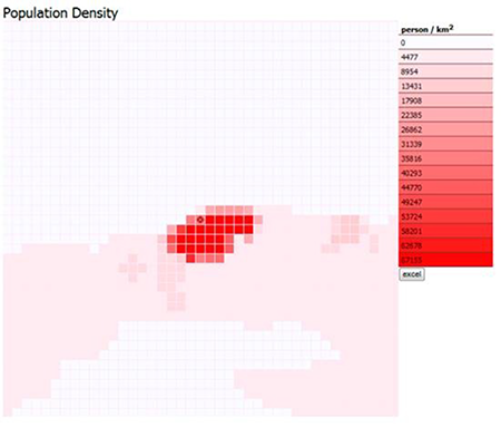 Para obtener los datos de población en la forma que se necesitan, independientemente de los métodos que se utilicen para las evaluaciones de impacto, se precisa del uso de Sistemas de Información Geográfico. Para este trabajo se utilizó el sistema MapInfo V.9. Se enlazaron los datos de población por municipios según la división política administrativa de Cuba y las rejillas correspondientes a cada CTE. Se utilizaron los datos del 2015, obtenidos de las estadísticas nacionales (ONEI, 2016), (Figura 4).