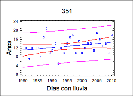 Comportamiento de la tendencia de la cantidad de días con lluvia del período lluvioso