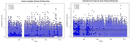 Las bases de datos utilizadas han sido corregidas como se explicó anteriormente en el caso de las estaciones 310, 312, 313, 316, 317, 321, 322, 325, 328, 329, 333, 338, 339, 342, 343, 349, 351, 352, 353, 355, 357, 358, 365, 366, 369, 371, 377, mientras que en los casos de las estaciones 318, 345, 347 y 348 no fue necesario.