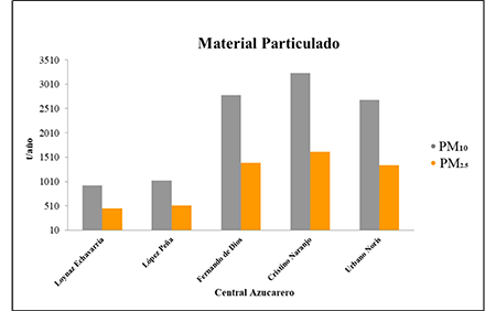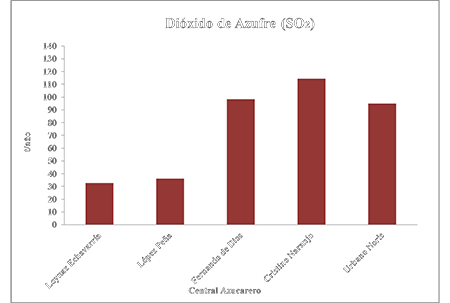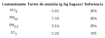 El mayor aporte lo constituye el PM10 y PM2,5 causado por el elevado consumo de bagazo utilizado como combustible. Por otra parte, ninguna de las emisiones de SO2 supera la EMA establecida en la norma cubana, debido al bajo contenido de azufre en el bagazo quemado.
