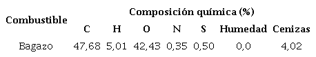 Se ha reportado una composición similar para el bagazo en la que subestima la composición de azufre, ya que las emisiones de SO2 provenientes de la quema de bagazo son escasas (EPA, 1998). Considerando la norma potencial de caña del central y según los datos de consumo reales reportados por las entidades evaluadas para el año 2018, se obtuvo la cantidad de bagazo quemado. La temperatura de salida de los gases de combustión se promedió a partir de los datos de operación recogidos para el estudio, y teniendo en cuenta que los centrales poseían más de una caldera emitiendo a través de una misma chimenea (Tabla 3 y 4).