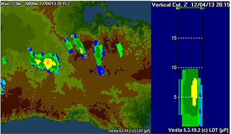 Además, se analizaron las observaciones del radar meteorológico para 6 de los 9 días en estudio, facilitadas por el Centro de Radares, en la provincia de Camagüey. A partir de las observaciones de radar y con la utilización del software Vesta Process en su versión 5.3.19.2, desarrollado por especialistas del Centro de Radares, se analizaron algunas de las variables radáricas propuestas por Gamboa (2004) para el análisis de las Tormentas Locales Severas.