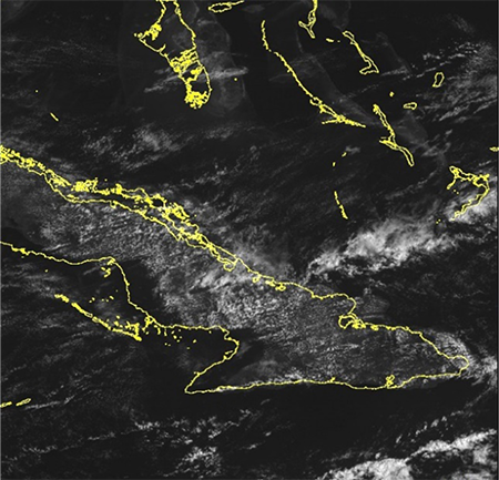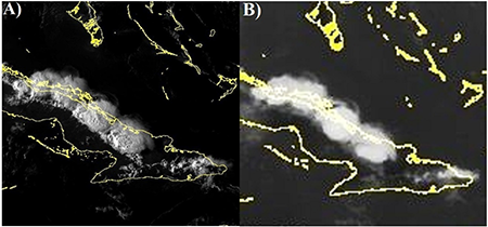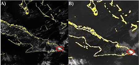 En las imágenes de satélite se halló que el principal mecanismo que incentiva la convección profunda y organizada fue la interacción del frente de brisa con los HCR hacia el interior o próximo al litoral del archipiélago cubano.