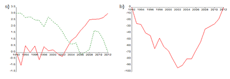 El viento máximo anual para la estación meteorológica de Cabo Lucrecia, (ver tabla 3 y figura 8), presenta tendencia global estadísticamente significativa para el nivel de significación del 5%, con un punto de cambio hacia el año 2002 y una sola intersección en 2004 por intermedio de las pruebas de Pettitt y Mann-Kendall respectivamente. El incremento de la velocidad máxima del viento anual está relacionado con el aumento de la actividad ciclónica que ha experimentado nuestro país a partir de 1996 (Ballester et al., 2010; Hidalgo & Mitrani, 2015; Mitrani et al., 2016, 2017).