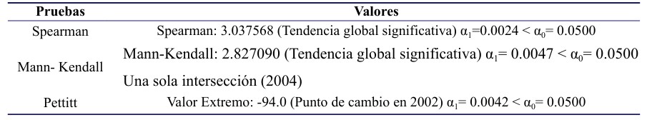 Se aplicó la prueba de Pettitt si esta arroja un punto de cambio significativo cercano al test de M-K, en caso de esta última ser estadísticamente significativa.