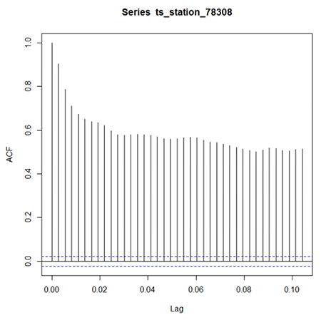 La autocorrelación en las series es un indicador de cómo cada valor de la serie temporal. En este caso se empleó la función acf() para la detección de esta característica.