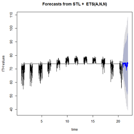Los pronósticos de objetos STL (por sus siglas en inglés, Standard Triangle Language) se obtuvieron aplicando un método de predicción no estacional a los datos ajustados estacionalmente y re estadificando utilizando el último año del componente estacional. Se empleó el método Holt Winters de la familia de series temporales de suavizado exponencial.