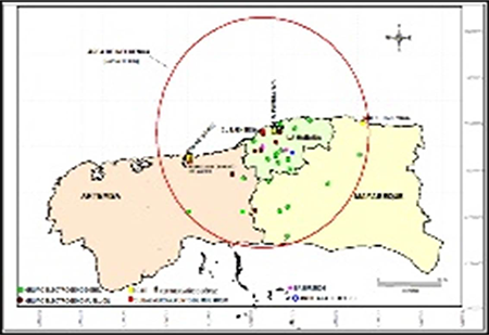 Termoeléctrica Ernesto Che Guevara: se encuentra a una distancia de la zona de estudio de 47,6 Km, perteneciente a la comunidad de Santa Cruz del Norte, actual provincia de Mayabeque.