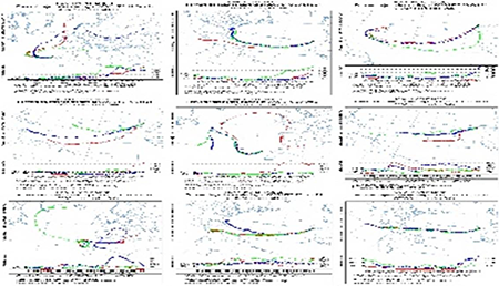 Para la totalidad de los días analizados las trayectorias presentan direcciones Este-Oeste aproximadamente, excepto para las semanas del 19 al 28 de septiembre de 2021, del 29 de octubre al 8 de noviembre de 2021 y del 19 de noviembre al 28 de noviembre de 2021, donde las masas de aire siguen direcciones Este-Noreste aproximadamente (Figura 4). Todos estos contaminantes sobrepasaron las alturas iniciales que utilizó el modelo en su cálculo y viajaron principalmente sobre los 1500 m de altura.
