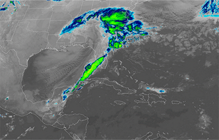 La banda frontal transitó sobre las regiones occidental y central del territorio nacional el día 29 y 30, llegando al oriente cubano en la noche de este último día. En esta región, el lento movimiento del sistema, unido a las condiciones locales, generaron acumulados intensos de precipitaciones destacándose, según datos del INRH, 100 mm en el Puerto del municipio Manatí, Las Tunas, 121.0 mm en el Tele Correo Yabazón, Holguín y 100 mm en la localidad de Pilón, Granma.