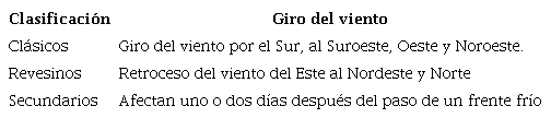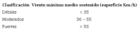 En Cuba los FF se clasifican según lo planteado por Rodríguez et al. (1984), es decir, por la intensidad y giro de los vientos en superficie al paso de ellos, criterios que se exponen en las tablas 1 y 2.